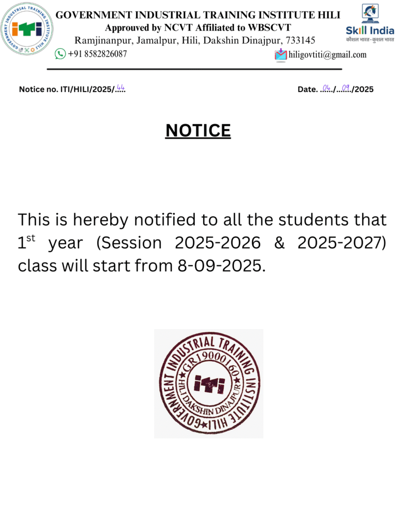 1st Year (session 2025-2026 & 2025-2027) Class will start from 8th September 2025.